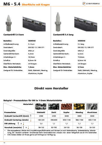 Drehzahl Centerdrill (U/min) 2000 2400 3600 3600 3600