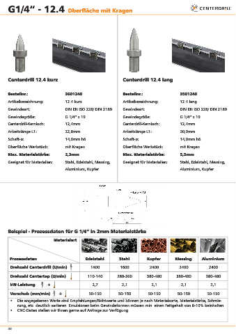 Drehzahl Centerdrill (U/min) 1400 1600 2400 2400 2400
