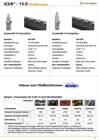 Weitere Prozessdaten finden Sie online Videos zum Fließlochformen