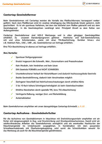 Beim Gewindeformen empfehlen wir unser dazugehöriges Centertap-Schmieröl. s. S. 61