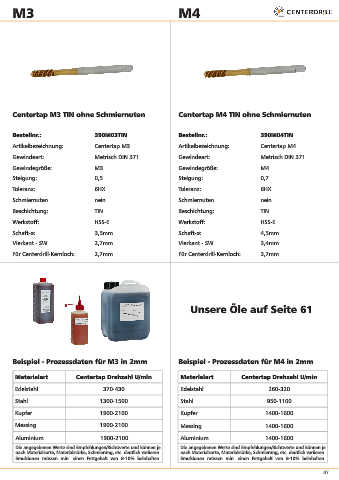 Materialart Centertap Drehzahl U/min Materialart Centertap Drehzahl U/min