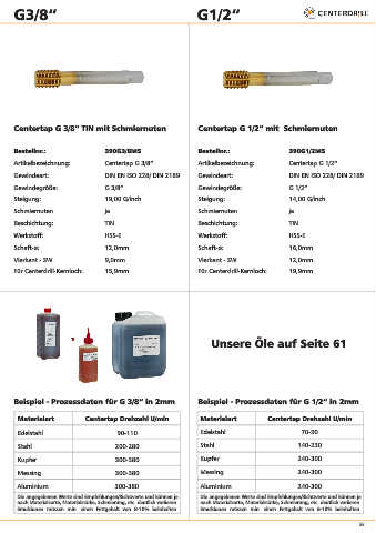 Centertap G 1/4“ TIN mit Schmiernuten Centertap G 3/8“ TIN mit Schmiernuten Centertap G 1/2“ mit Schmiernuten