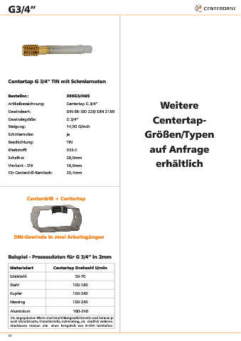 Beispiel - Prozessdaten für G 3/4“ in 2mm