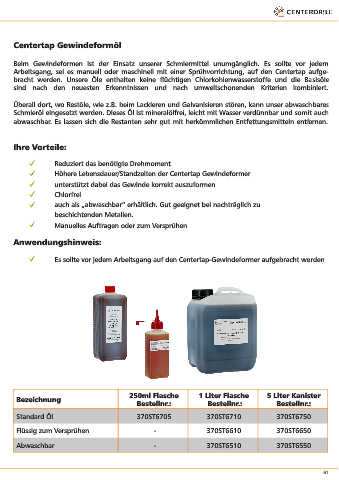 Es sollte vor jedem Arbeitsgang auf den Centertap-Gewindeformer aufgebracht werden